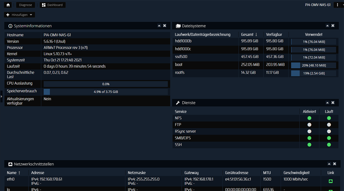 NAS OpenMediaVault Blue Dark Theme
