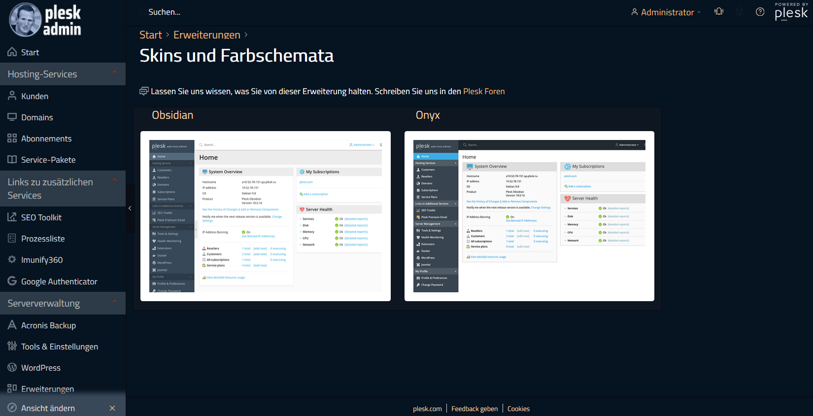 Plesk Blue Dark Backend Theme